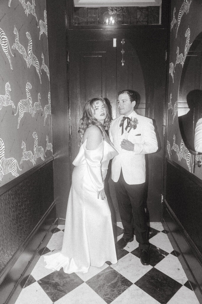 As a wedding photographer for those with vintage hearts, I’ve had the opportunity to meet and photograph some incredibly cool clients. Kaity and Jeff are at the top of that list. From the moment I read through their client questionnaire, I knew I was in for a treat and I was right! Their vintage-inspired New Year’s Eve wedding at La Chinesca in Philadelphia is one I won’t soon forget.