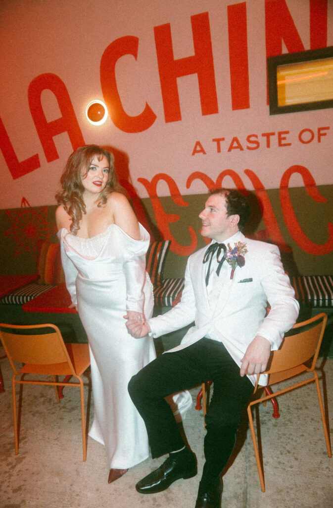 La Chinesca is Philadelphia’s only Mexicali restaurant, known for its unique Mexican-Chinese fusion cuisine and intimate environment. Housed in a former Jiffy Lube, it’s a restaurant like no other. This unique wedding venue is the perfect place to host retro-themed weddings like Kaity and Jeff’s. Before wedding planning consumed their time, this lovely couple enjoyed exploring vintage shops & finding new places to eat. A more fitting venue for their retro-themed wedding simply does not exist! I highly recommend this venue to other couples looking for an intimate, carefree, and artsy location that complements a fun, unique day.
